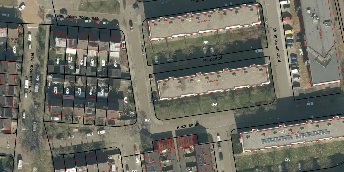 Het perceel waarop Harperhof 45 staat heeft een oppervlakte van 1940 m². Dit is een zeer groot perceel. De perceeloppervlakte wordt geregistreerd door het Kadaster. Gedetailleerde informatie over de maten van dit perceel kunt u vinden in het rapport Kadastrale kaart met maatvoering van Harperhof 45.