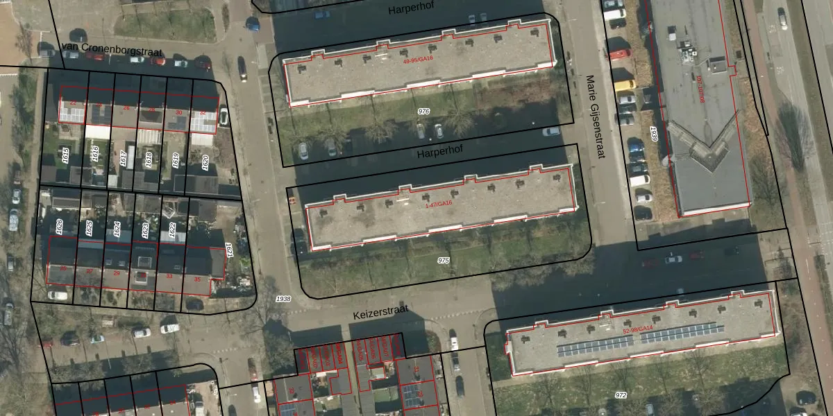 Het perceel waarop Harperhof 47-GA02 staat heeft een oppervlakte van 1940 m². Dit is een zeer groot perceel. De perceeloppervlakte wordt geregistreerd door het Kadaster. Gedetailleerde informatie over de maten van dit perceel kunt u vinden in het rapport Kadastrale kaart met maatvoering van Harperhof 47-GA02.