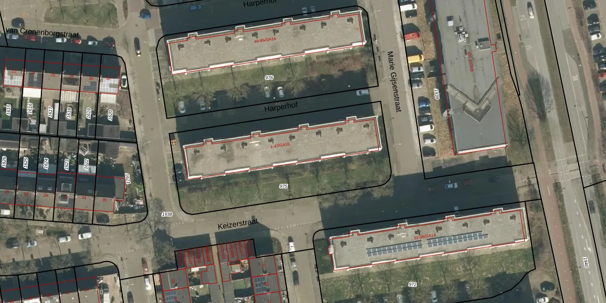 Het perceel waarop Harperhof 47-GA03 staat heeft een oppervlakte van 1940 m². Dit is een zeer groot perceel. De perceeloppervlakte wordt geregistreerd door het Kadaster. Gedetailleerde informatie over de maten van dit perceel kunt u vinden in het rapport Kadastrale kaart met maatvoering van Harperhof 47-GA03.