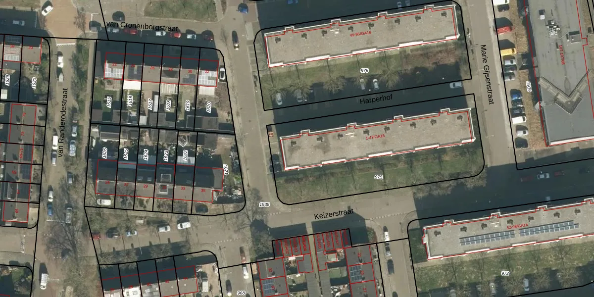 Het perceel waarop Harperhof 47-GA07 staat heeft een oppervlakte van 1940 m². Dit is een zeer groot perceel. De perceeloppervlakte wordt geregistreerd door het Kadaster. Gedetailleerde informatie over de maten van dit perceel kunt u vinden in het rapport Kadastrale kaart met maatvoering van Harperhof 47-GA07.