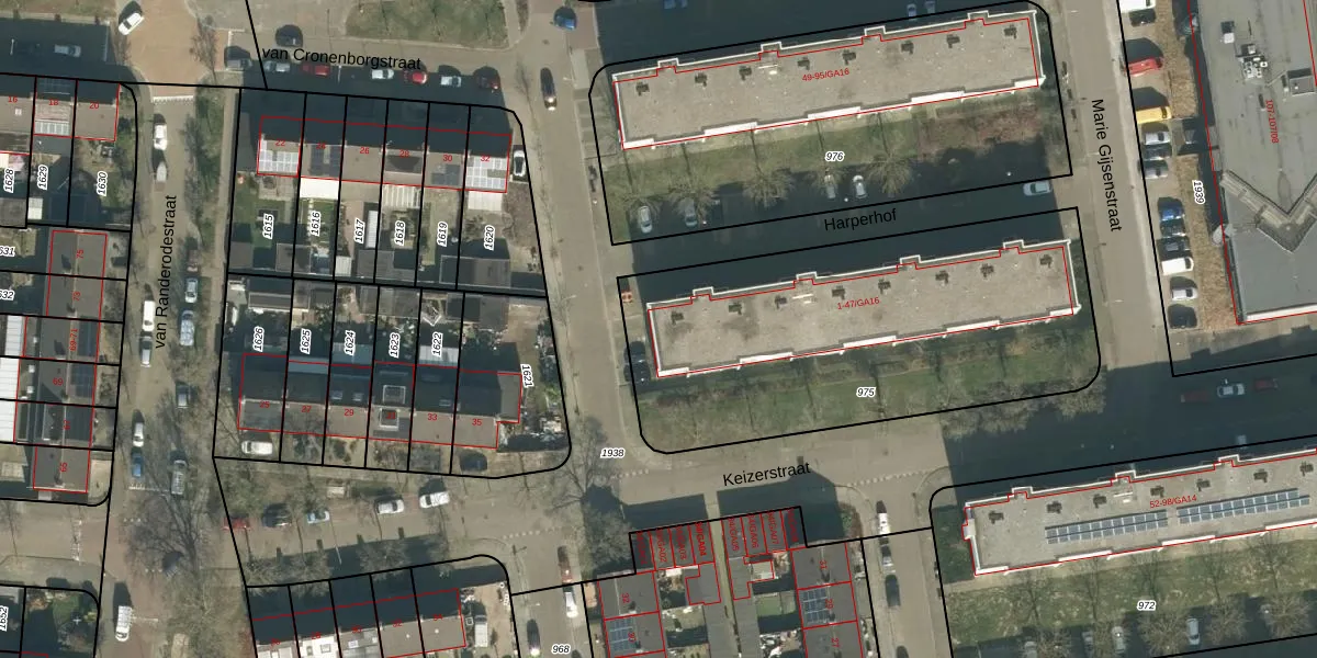 Het perceel waarop Harperhof 47-GA08 staat heeft een oppervlakte van 1940 m². Dit is een zeer groot perceel. De perceeloppervlakte wordt geregistreerd door het Kadaster. Gedetailleerde informatie over de maten van dit perceel kunt u vinden in het rapport Kadastrale kaart met maatvoering van Harperhof 47-GA08.