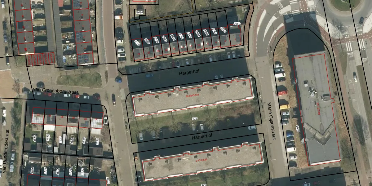 Het perceel waarop Harperhof 73 staat heeft een oppervlakte van 1950 m². Dit is een zeer groot perceel. De perceeloppervlakte wordt geregistreerd door het Kadaster. Gedetailleerde informatie over de maten van dit perceel kunt u vinden in het rapport Kadastrale kaart met maatvoering van Harperhof 73.