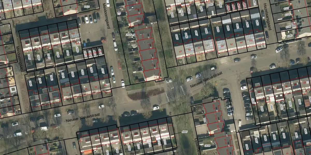 Het perceel waarop Hazelaarsgaard 1 staat heeft een oppervlakte van 1615 m². Dit is een zeer groot perceel. De perceeloppervlakte wordt geregistreerd door het Kadaster. Gedetailleerde informatie over de maten van dit perceel kunt u vinden in het rapport Kadastrale kaart met maatvoering van Hazelaarsgaard 1.