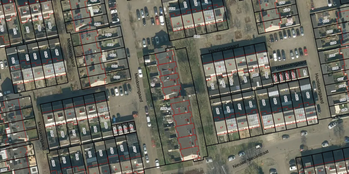 Het perceel waarop Hazelaarsgaard 13 staat heeft een oppervlakte van 1615 m². Dit is een zeer groot perceel. De perceeloppervlakte wordt geregistreerd door het Kadaster. Gedetailleerde informatie over de maten van dit perceel kunt u vinden in het rapport Kadastrale kaart met maatvoering van Hazelaarsgaard 13.
