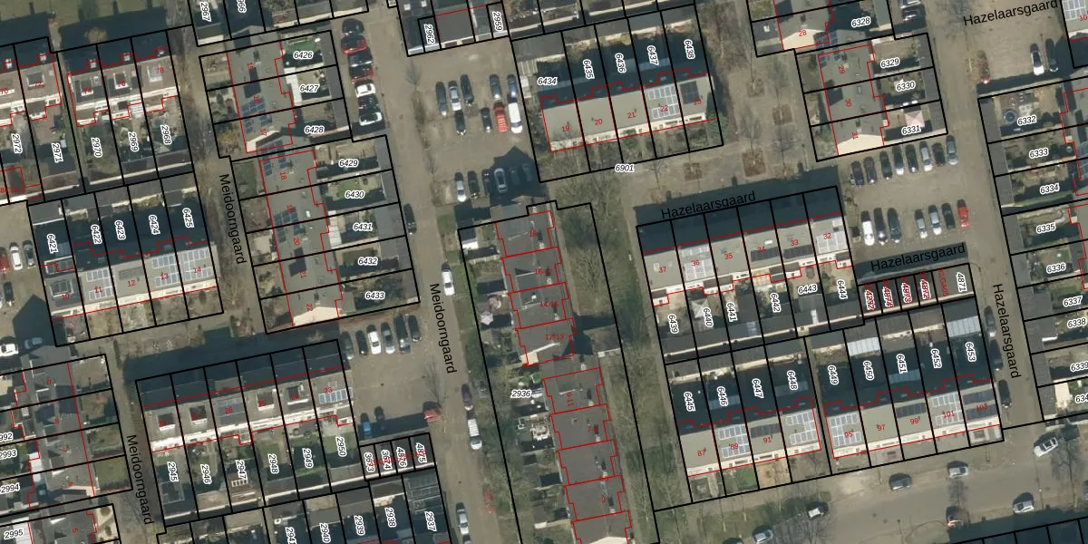 Het perceel waarop Hazelaarsgaard 16 staat heeft een oppervlakte van 1615 m². Dit is een zeer groot perceel. De perceeloppervlakte wordt geregistreerd door het Kadaster. Gedetailleerde informatie over de maten van dit perceel kunt u vinden in het rapport Kadastrale kaart met maatvoering van Hazelaarsgaard 16.