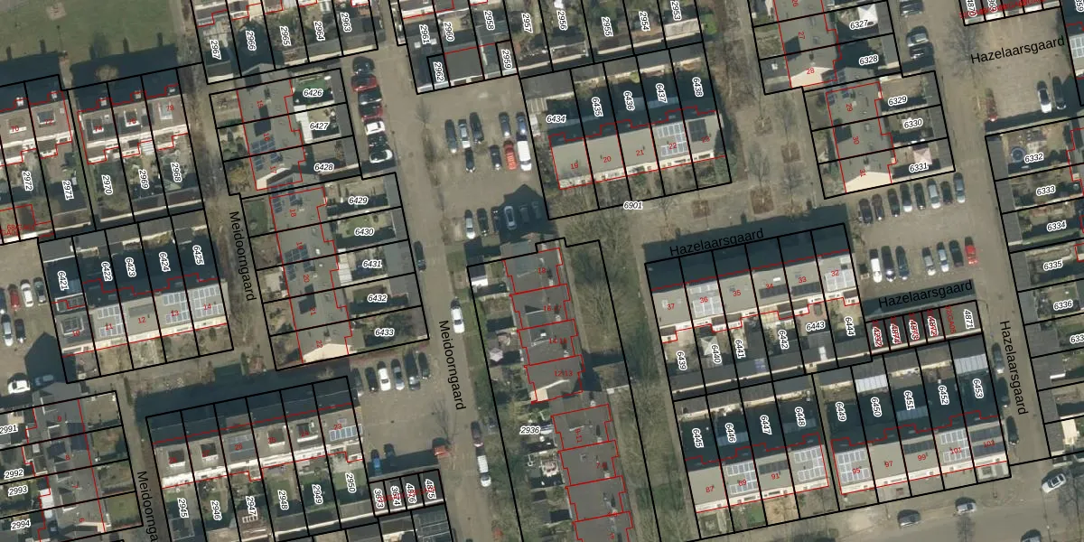 Het perceel waarop Hazelaarsgaard 18 staat heeft een oppervlakte van 1615 m². Dit is een zeer groot perceel. De perceeloppervlakte wordt geregistreerd door het Kadaster. Gedetailleerde informatie over de maten van dit perceel kunt u vinden in het rapport Kadastrale kaart met maatvoering van Hazelaarsgaard 18.