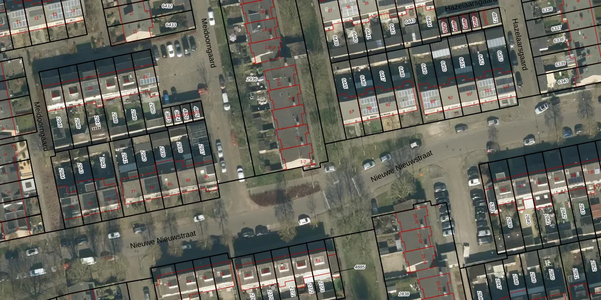 Het perceel waarop Hazelaarsgaard 2 staat heeft een oppervlakte van 1615 m². Dit is een zeer groot perceel. De perceeloppervlakte wordt geregistreerd door het Kadaster. Gedetailleerde informatie over de maten van dit perceel kunt u vinden in het rapport Kadastrale kaart met maatvoering van Hazelaarsgaard 2.