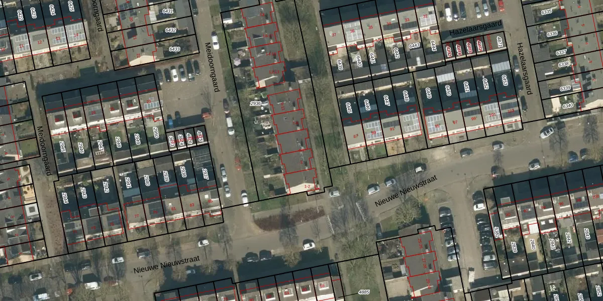Het perceel waarop Hazelaarsgaard 4 staat heeft een oppervlakte van 1615 m². Dit is een zeer groot perceel. De perceeloppervlakte wordt geregistreerd door het Kadaster. Gedetailleerde informatie over de maten van dit perceel kunt u vinden in het rapport Kadastrale kaart met maatvoering van Hazelaarsgaard 4.