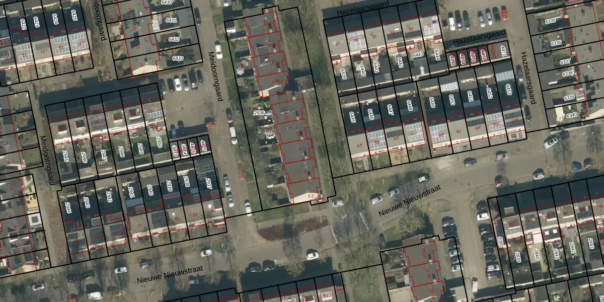 Het perceel waarop Hazelaarsgaard 5 staat heeft een oppervlakte van 1615 m². Dit is een zeer groot perceel. De perceeloppervlakte wordt geregistreerd door het Kadaster. Gedetailleerde informatie over de maten van dit perceel kunt u vinden in het rapport Kadastrale kaart met maatvoering van Hazelaarsgaard 5.