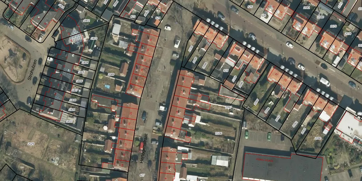 Het perceel waarop Hertogenstraat 22 staat heeft een oppervlakte van 3256 m². Dit is een zeer groot perceel. De perceeloppervlakte wordt geregistreerd door het Kadaster. Gedetailleerde informatie over de maten van dit perceel kunt u vinden in het rapport Kadastrale kaart met maatvoering van Hertogenstraat 22.