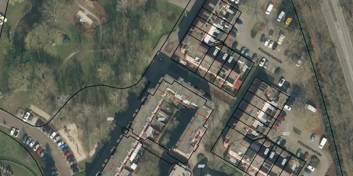 Het perceel waarop Het Kapittel 2 staat heeft een oppervlakte van 1305 m². Dit is een zeer groot perceel. De perceeloppervlakte wordt geregistreerd door het Kadaster. Gedetailleerde informatie over de maten van dit perceel kunt u vinden in het rapport Kadastrale kaart met maatvoering van Het Kapittel 2.