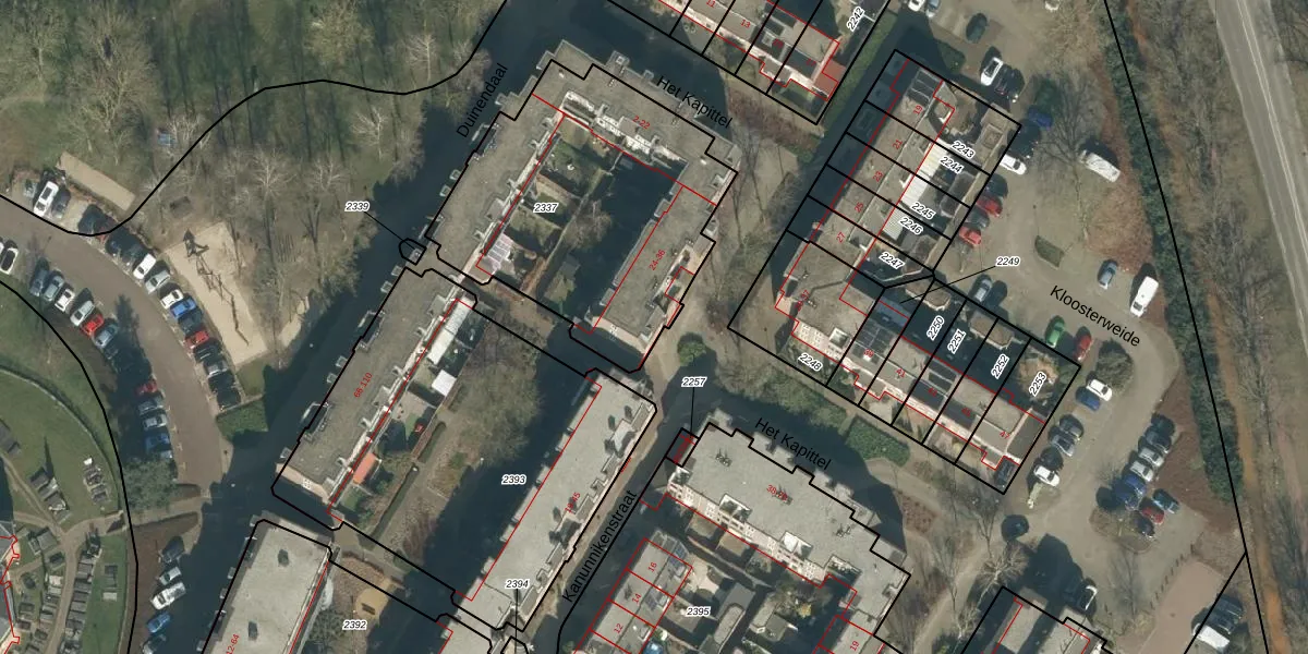 Het perceel waarop Het Kapittel 34 staat heeft een oppervlakte van 1305 m². Dit is een zeer groot perceel. De perceeloppervlakte wordt geregistreerd door het Kadaster. Gedetailleerde informatie over de maten van dit perceel kunt u vinden in het rapport Kadastrale kaart met maatvoering van Het Kapittel 34.