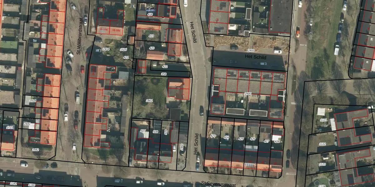 Het perceel waarop Het Schild 1 staat heeft een oppervlakte van 717 m². Dit is een groot perceel. De perceeloppervlakte wordt geregistreerd door het Kadaster. Gedetailleerde informatie over de maten van dit perceel kunt u vinden in het rapport Kadastrale kaart met maatvoering van Het Schild 1.