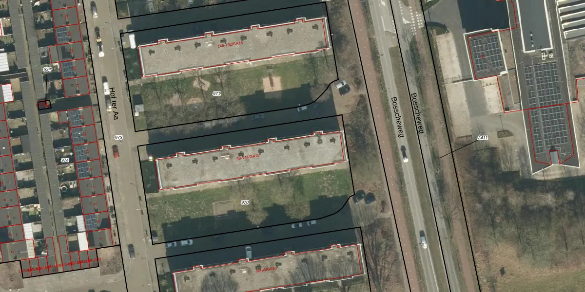 Het perceel waarop Hof ter Aa 134 staat heeft een oppervlakte van 2370 m². Dit is een zeer groot perceel. De perceeloppervlakte wordt geregistreerd door het Kadaster. Gedetailleerde informatie over de maten van dit perceel kunt u vinden in het rapport Kadastrale kaart met maatvoering van Hof ter Aa 134.