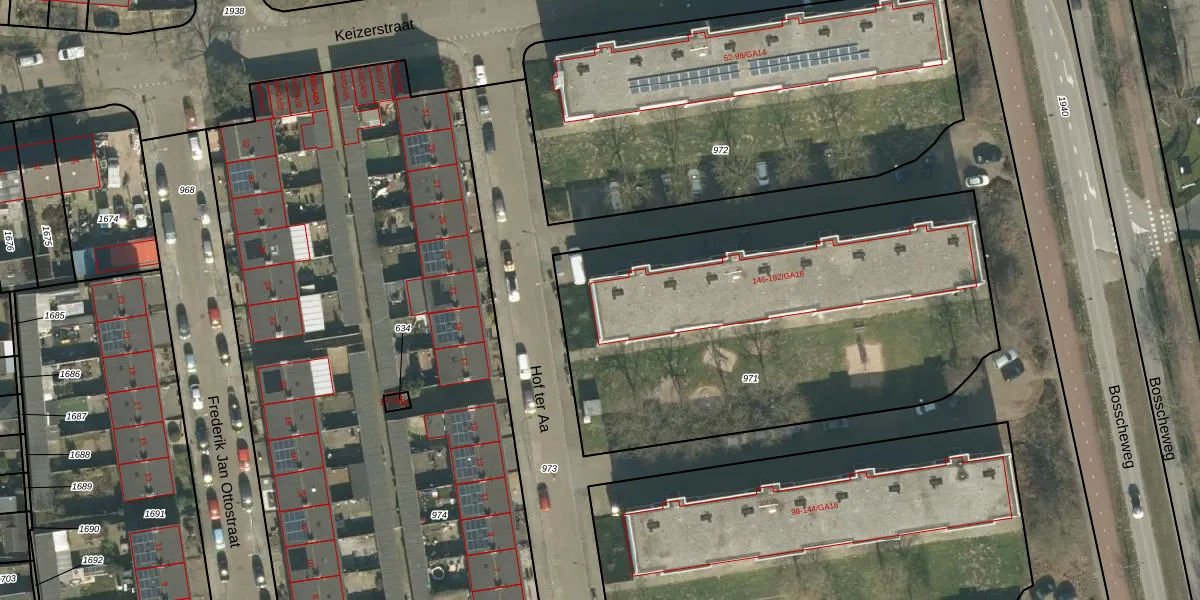 Hof ter Aa 192-GA08 is gelegen op kadastraal perceel BTL00M971. Deze kadastrale aanduiding is uniek en wordt gebruikt door het Kadaster om eigendomsrechten en andere zakelijke rechten vast te leggen. Het perceel maakt onderdeel uit van de kadastrale gemeente Boxtel.
