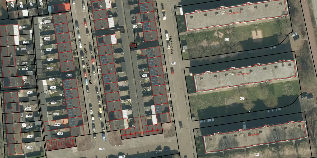 Het perceel waarop Hof ter Aa 9 staat heeft een oppervlakte van 4660 m². Dit is een zeer groot perceel. De perceeloppervlakte wordt geregistreerd door het Kadaster. Gedetailleerde informatie over de maten van dit perceel kunt u vinden in het rapport Kadastrale kaart met maatvoering van Hof ter Aa 9.