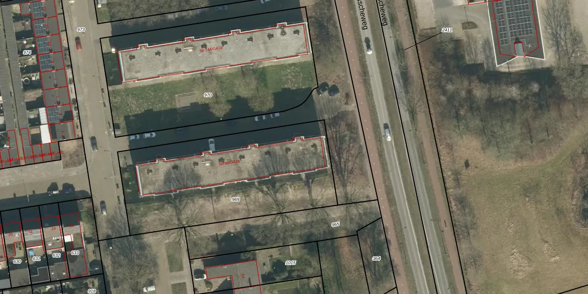 Het perceel waarop Hof ter Aa 94 staat heeft een oppervlakte van 2055 m². Dit is een zeer groot perceel. De perceeloppervlakte wordt geregistreerd door het Kadaster. Gedetailleerde informatie over de maten van dit perceel kunt u vinden in het rapport Kadastrale kaart met maatvoering van Hof ter Aa 94.