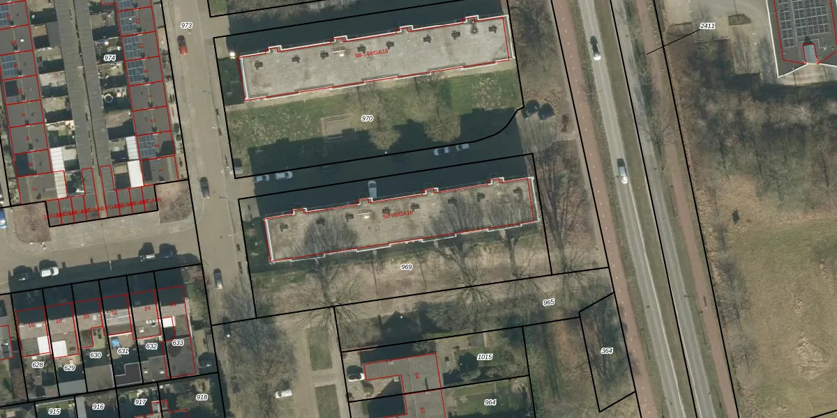 Het perceel waarop Hof ter Aa 96-GA14 staat heeft een oppervlakte van 2055 m². Dit is een zeer groot perceel. De perceeloppervlakte wordt geregistreerd door het Kadaster. Gedetailleerde informatie over de maten van dit perceel kunt u vinden in het rapport Kadastrale kaart met maatvoering van Hof ter Aa 96-GA14.
