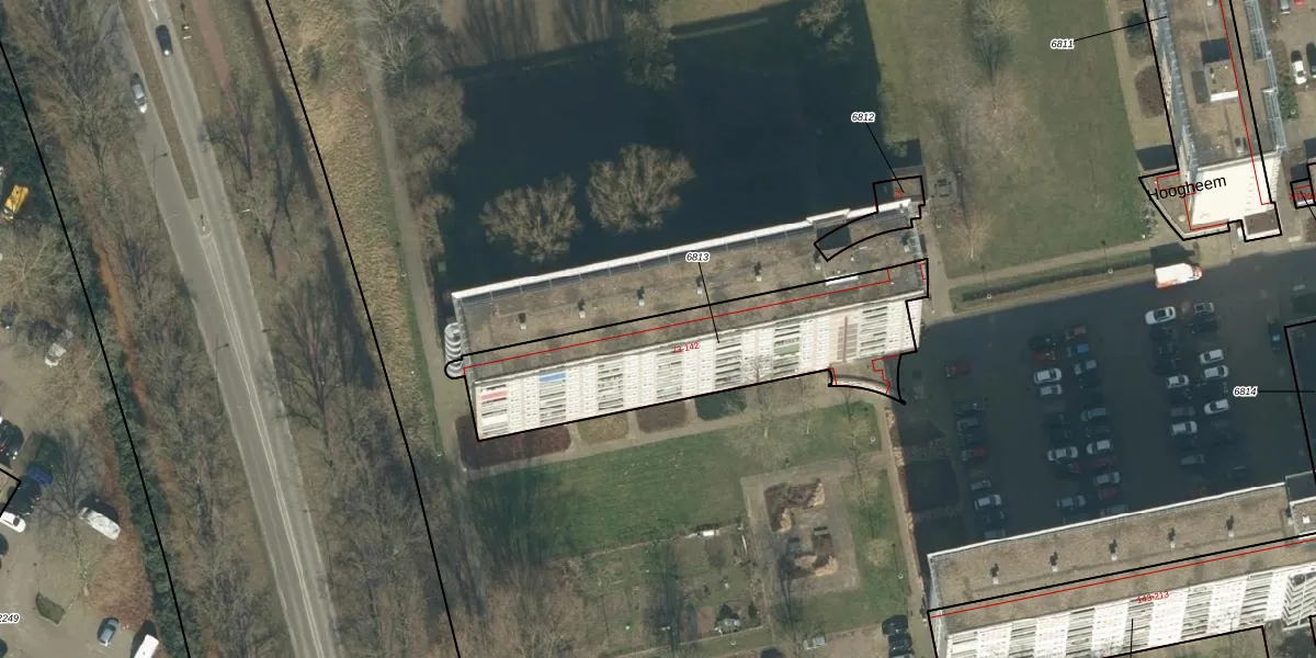 Het perceel waarop Hoogheem 105 staat heeft een oppervlakte van 950 m². Dit is een groot perceel. De perceeloppervlakte wordt geregistreerd door het Kadaster. Gedetailleerde informatie over de maten van dit perceel kunt u vinden in het rapport Kadastrale kaart met maatvoering van Hoogheem 105.