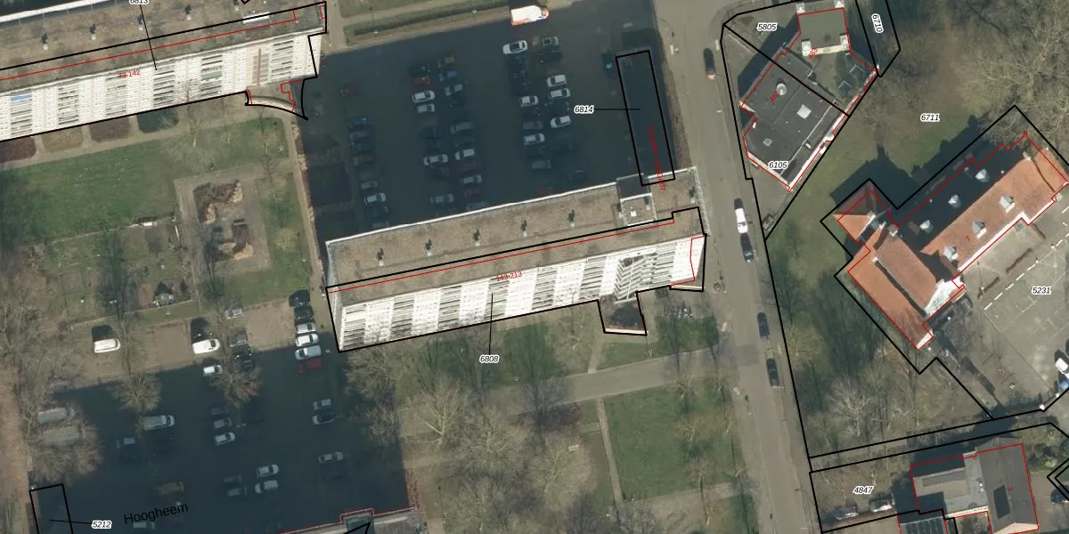 Het perceel waarop Hoogheem 182 staat heeft een oppervlakte van 981 m². Dit is een groot perceel. De perceeloppervlakte wordt geregistreerd door het Kadaster. Gedetailleerde informatie over de maten van dit perceel kunt u vinden in het rapport Kadastrale kaart met maatvoering van Hoogheem 182.