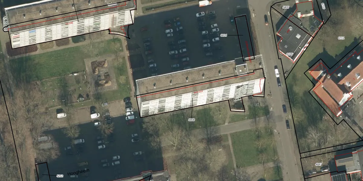 Het perceel waarop Hoogheem 193 staat heeft een oppervlakte van 981 m². Dit is een groot perceel. De perceeloppervlakte wordt geregistreerd door het Kadaster. Gedetailleerde informatie over de maten van dit perceel kunt u vinden in het rapport Kadastrale kaart met maatvoering van Hoogheem 193.