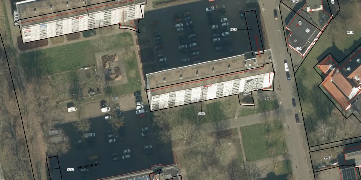 Het perceel waarop Hoogheem 201 staat heeft een oppervlakte van 981 m². Dit is een groot perceel. De perceeloppervlakte wordt geregistreerd door het Kadaster. Gedetailleerde informatie over de maten van dit perceel kunt u vinden in het rapport Kadastrale kaart met maatvoering van Hoogheem 201.