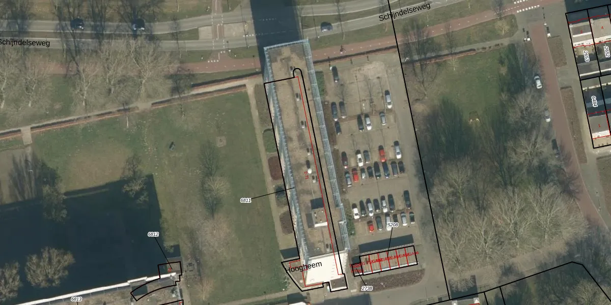 Het perceel waarop Hoogheem 22 staat heeft een oppervlakte van 955 m². Dit is een groot perceel. De perceeloppervlakte wordt geregistreerd door het Kadaster. Gedetailleerde informatie over de maten van dit perceel kunt u vinden in het rapport Kadastrale kaart met maatvoering van Hoogheem 22.