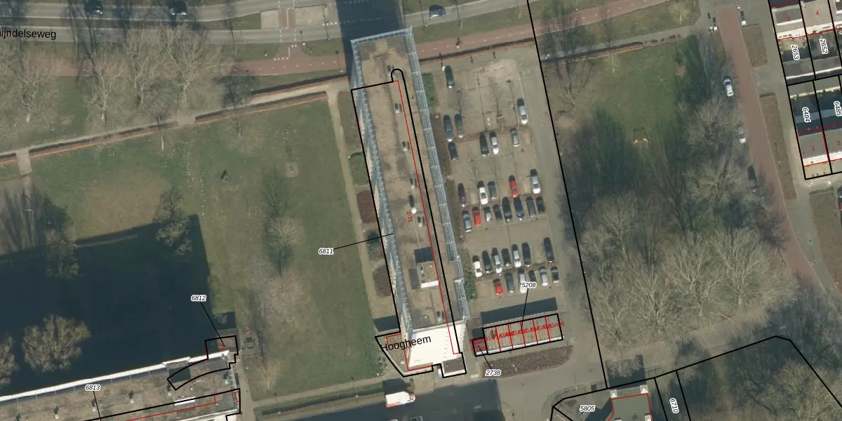 Het perceel waarop Hoogheem 30 staat heeft een oppervlakte van 955 m². Dit is een groot perceel. De perceeloppervlakte wordt geregistreerd door het Kadaster. Gedetailleerde informatie over de maten van dit perceel kunt u vinden in het rapport Kadastrale kaart met maatvoering van Hoogheem 30.