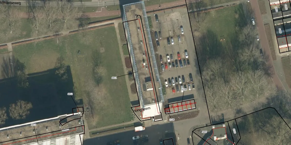 Het perceel waarop Hoogheem 39 staat heeft een oppervlakte van 955 m². Dit is een groot perceel. De perceeloppervlakte wordt geregistreerd door het Kadaster. Gedetailleerde informatie over de maten van dit perceel kunt u vinden in het rapport Kadastrale kaart met maatvoering van Hoogheem 39.