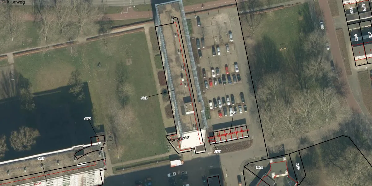 Het perceel waarop Hoogheem 42 staat heeft een oppervlakte van 955 m². Dit is een groot perceel. De perceeloppervlakte wordt geregistreerd door het Kadaster. Gedetailleerde informatie over de maten van dit perceel kunt u vinden in het rapport Kadastrale kaart met maatvoering van Hoogheem 42.