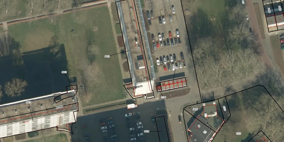 Het perceel waarop Hoogheem 56 staat heeft een oppervlakte van 955 m². Dit is een groot perceel. De perceeloppervlakte wordt geregistreerd door het Kadaster. Gedetailleerde informatie over de maten van dit perceel kunt u vinden in het rapport Kadastrale kaart met maatvoering van Hoogheem 56.
