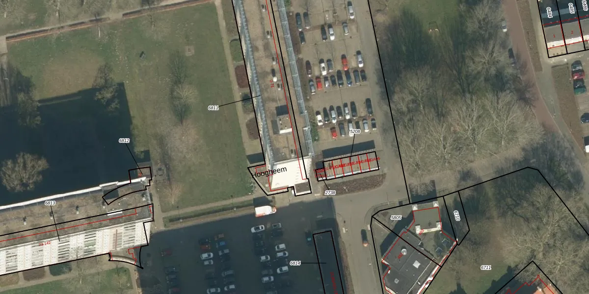 Het perceel waarop Hoogheem 60 staat heeft een oppervlakte van 955 m². Dit is een groot perceel. De perceeloppervlakte wordt geregistreerd door het Kadaster. Gedetailleerde informatie over de maten van dit perceel kunt u vinden in het rapport Kadastrale kaart met maatvoering van Hoogheem 60.