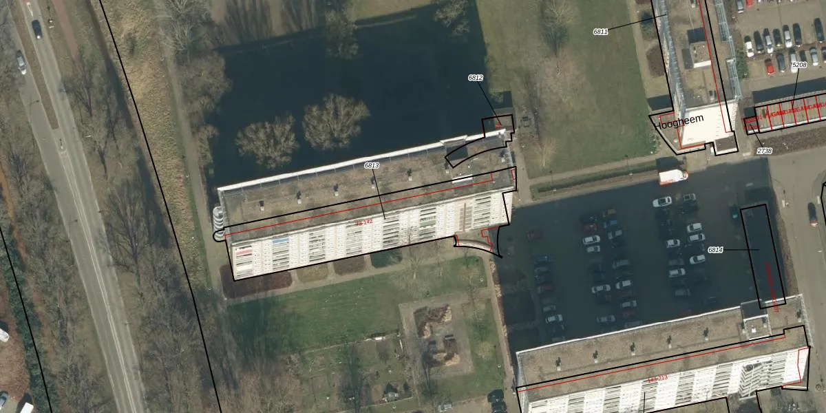 Het perceel waarop Hoogheem 90 staat heeft een oppervlakte van 950 m². Dit is een groot perceel. De perceeloppervlakte wordt geregistreerd door het Kadaster. Gedetailleerde informatie over de maten van dit perceel kunt u vinden in het rapport Kadastrale kaart met maatvoering van Hoogheem 90.