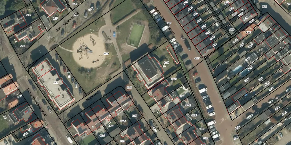 Het perceel waarop Houtwerf 14 staat heeft een oppervlakte van 752 m². Dit is een groot perceel. De perceeloppervlakte wordt geregistreerd door het Kadaster. Gedetailleerde informatie over de maten van dit perceel kunt u vinden in het rapport Kadastrale kaart met maatvoering van Houtwerf 14.