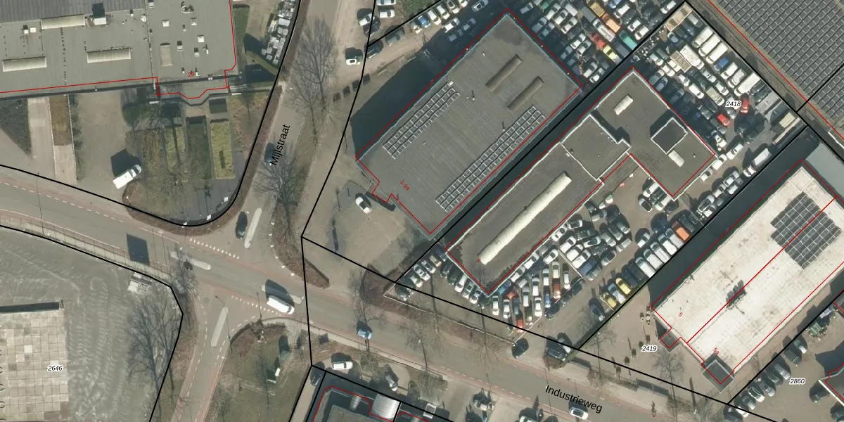 Het perceel waarop Industrieweg 1-a staat heeft een oppervlakte van 3670 m². Dit is een zeer groot perceel. De perceeloppervlakte wordt geregistreerd door het Kadaster. Gedetailleerde informatie over de maten van dit perceel kunt u vinden in het rapport Kadastrale kaart met maatvoering van Industrieweg 1-a.