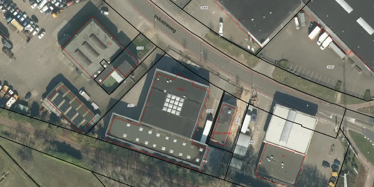 Het perceel waarop Industrieweg 16-c staat heeft een oppervlakte van 2780 m². Dit is een zeer groot perceel. De perceeloppervlakte wordt geregistreerd door het Kadaster. Gedetailleerde informatie over de maten van dit perceel kunt u vinden in het rapport Kadastrale kaart met maatvoering van Industrieweg 16-c.