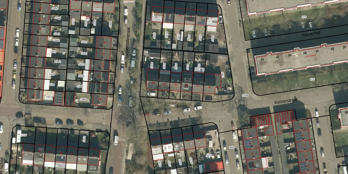 Gebruik de zoekbalk of klik op een perceel voor informatie over de adressen binnen dit perceel.
