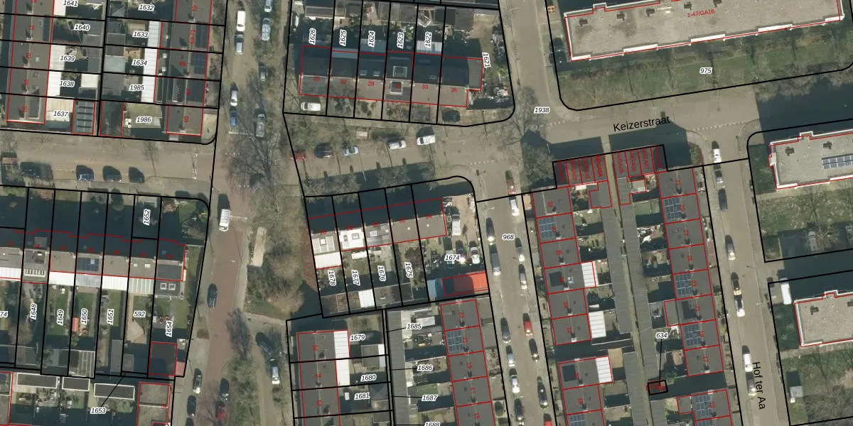 Keizerstraat 34 is gelegen op kadastraal perceel BTL00M1674. Deze kadastrale aanduiding is uniek en wordt gebruikt door het Kadaster om eigendomsrechten en andere zakelijke rechten vast te leggen. Het perceel maakt onderdeel uit van de kadastrale gemeente Boxtel.