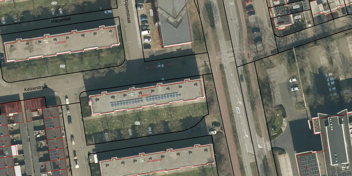 Het perceel waarop Keizerstraat 92 staat heeft een oppervlakte van 2080 m². Dit is een zeer groot perceel. De perceeloppervlakte wordt geregistreerd door het Kadaster. Gedetailleerde informatie over de maten van dit perceel kunt u vinden in het rapport Kadastrale kaart met maatvoering van Keizerstraat 92.