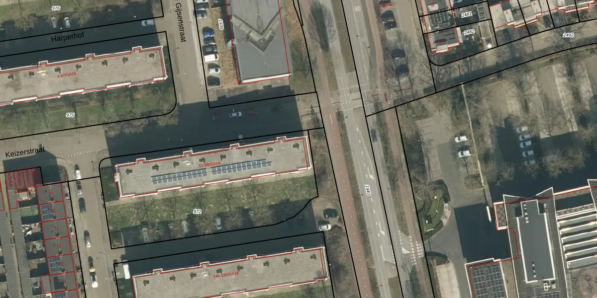 Het perceel waarop Keizerstraat 98-GA01 staat heeft een oppervlakte van 2080 m². Dit is een zeer groot perceel. De perceeloppervlakte wordt geregistreerd door het Kadaster. Gedetailleerde informatie over de maten van dit perceel kunt u vinden in het rapport Kadastrale kaart met maatvoering van Keizerstraat 98-GA01.