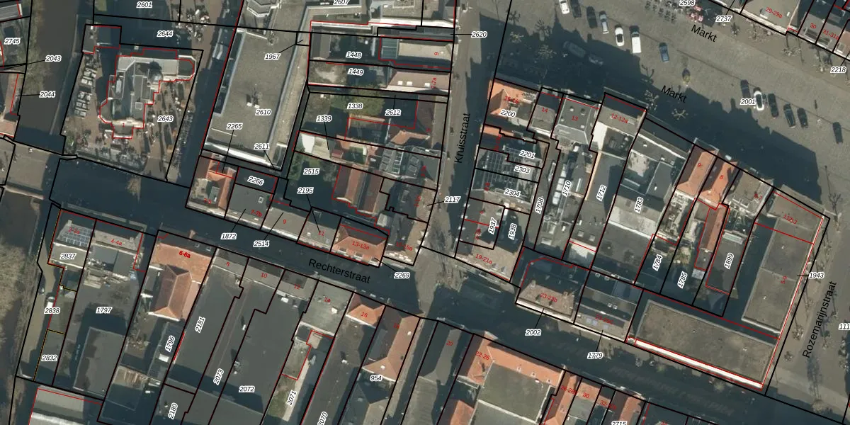 Het perceel waarop Kruisstraat 1 staat heeft een oppervlakte van 85 m². Dit is een klein perceel. De perceeloppervlakte wordt geregistreerd door het Kadaster. Gedetailleerde informatie over de maten van dit perceel kunt u vinden in het rapport Kadastrale kaart met maatvoering van Kruisstraat 1.