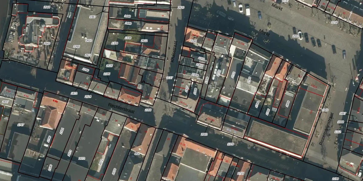 Het perceel waarop Kruisstraat 2 staat heeft een oppervlakte van 92 m². Dit is een klein perceel. De perceeloppervlakte wordt geregistreerd door het Kadaster. Gedetailleerde informatie over de maten van dit perceel kunt u vinden in het rapport Kadastrale kaart met maatvoering van Kruisstraat 2.
