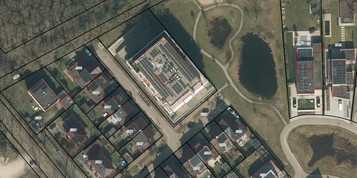 Het perceel waarop Lisdodde 15-401 staat heeft een oppervlakte van 2040 m². Dit is een zeer groot perceel. De perceeloppervlakte wordt geregistreerd door het Kadaster. Gedetailleerde informatie over de maten van dit perceel kunt u vinden in het rapport Kadastrale kaart met maatvoering van Lisdodde 15-401.