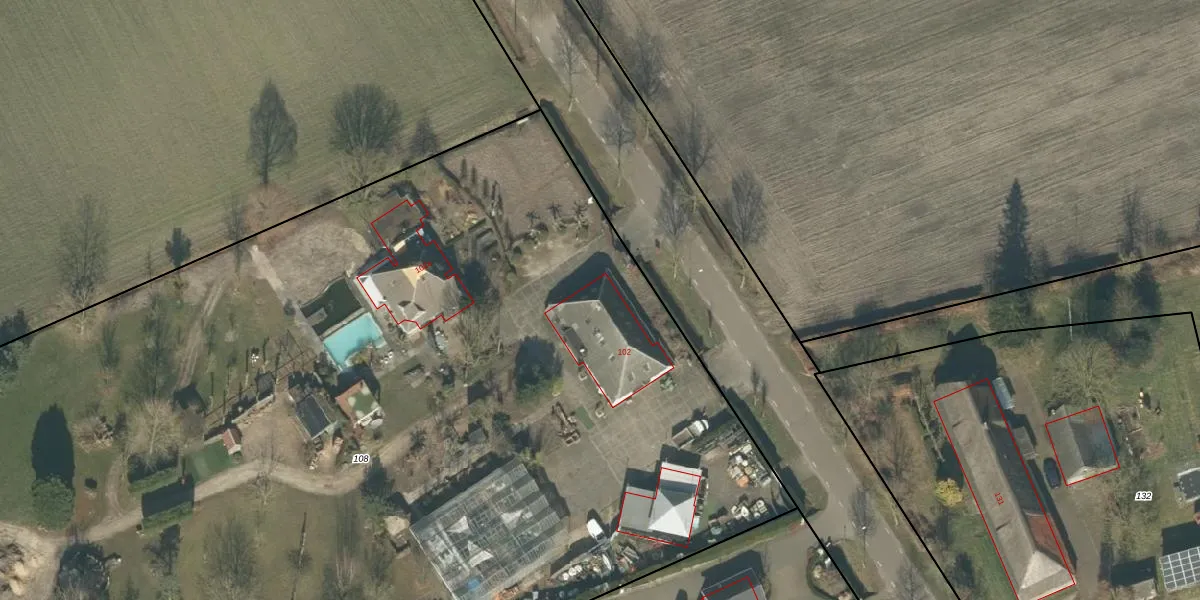 Het perceel waarop Mijlstraat 102 staat heeft een oppervlakte van 9980 m². Dit is een zeer groot perceel. De perceeloppervlakte wordt geregistreerd door het Kadaster. Gedetailleerde informatie over de maten van dit perceel kunt u vinden in het rapport Kadastrale kaart met maatvoering van Mijlstraat 102.