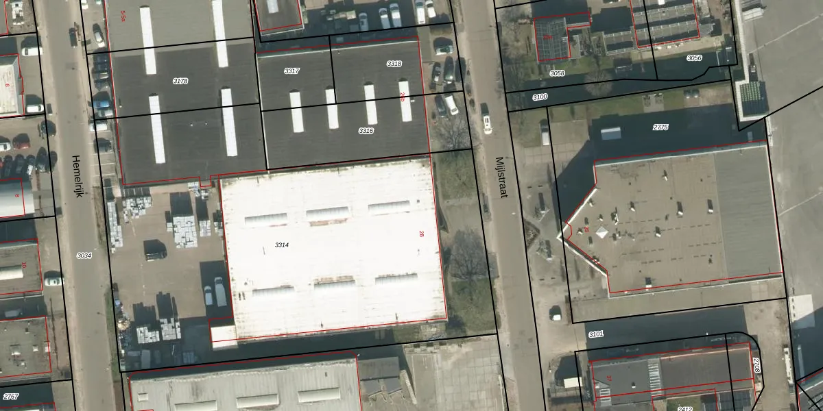 Het perceel waarop Mijlstraat 28 staat heeft een oppervlakte van 4807 m². Dit is een zeer groot perceel. De perceeloppervlakte wordt geregistreerd door het Kadaster. Gedetailleerde informatie over de maten van dit perceel kunt u vinden in het rapport Kadastrale kaart met maatvoering van Mijlstraat 28.