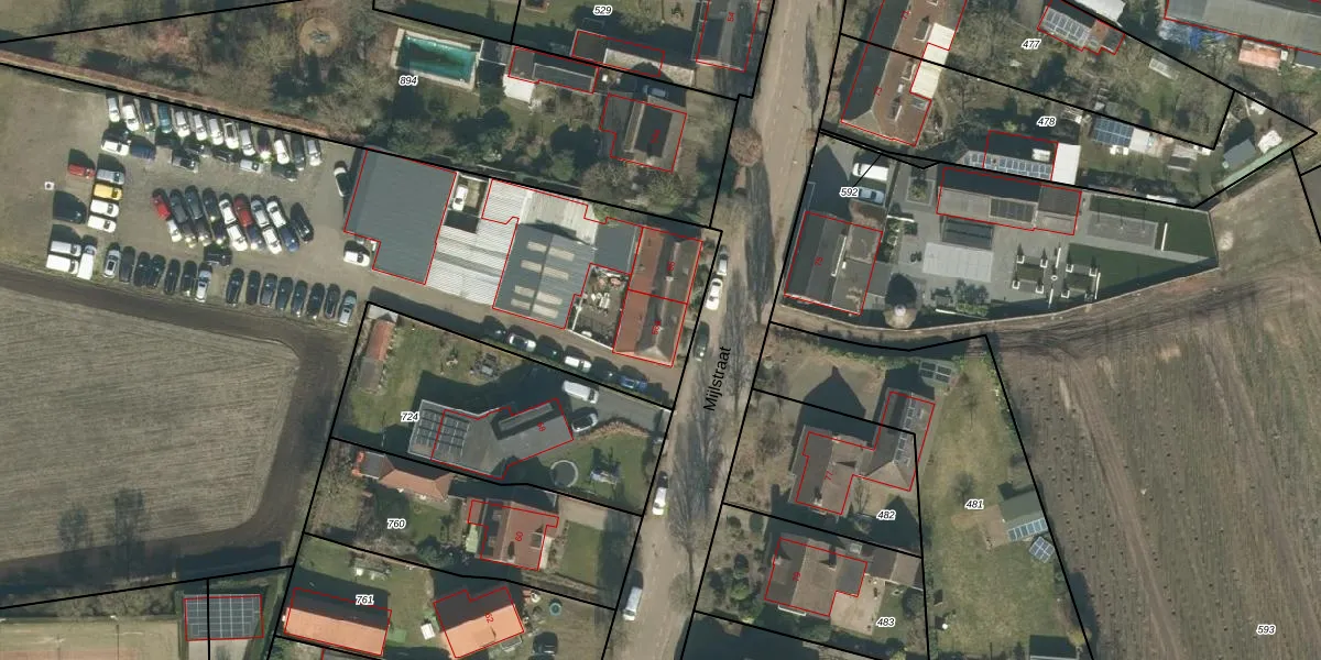 Het perceel waarop Mijlstraat 56-a staat heeft een oppervlakte van 1,7 ha. Dit is een zeer groot perceel. De perceeloppervlakte wordt geregistreerd door het Kadaster. Gedetailleerde informatie over de maten van dit perceel kunt u vinden in het rapport Kadastrale kaart met maatvoering van Mijlstraat 56-a.