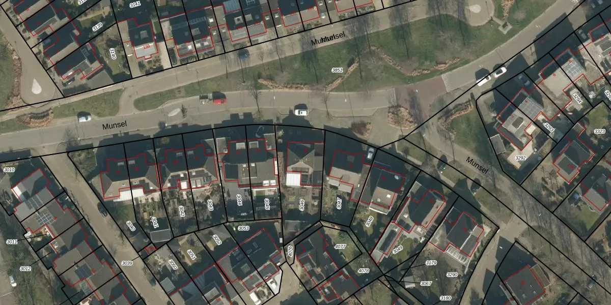 Het perceel waarop Munsel 76 staat heeft een oppervlakte van 498 m². Dit is een groot perceel. De perceeloppervlakte wordt geregistreerd door het Kadaster. Gedetailleerde informatie over de maten van dit perceel kunt u vinden in het rapport Kadastrale kaart met maatvoering van Munsel 76.