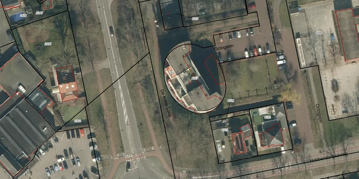 Het perceel waarop Octogoon 27 staat heeft een oppervlakte van 2144 m². Dit is een zeer groot perceel. De perceeloppervlakte wordt geregistreerd door het Kadaster. Gedetailleerde informatie over de maten van dit perceel kunt u vinden in het rapport Kadastrale kaart met maatvoering van Octogoon 27.