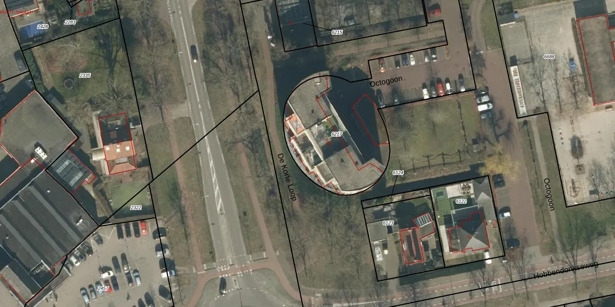 Het perceel waarop Octogoon 36 staat heeft een oppervlakte van 2144 m². Dit is een zeer groot perceel. De perceeloppervlakte wordt geregistreerd door het Kadaster. Gedetailleerde informatie over de maten van dit perceel kunt u vinden in het rapport Kadastrale kaart met maatvoering van Octogoon 36.