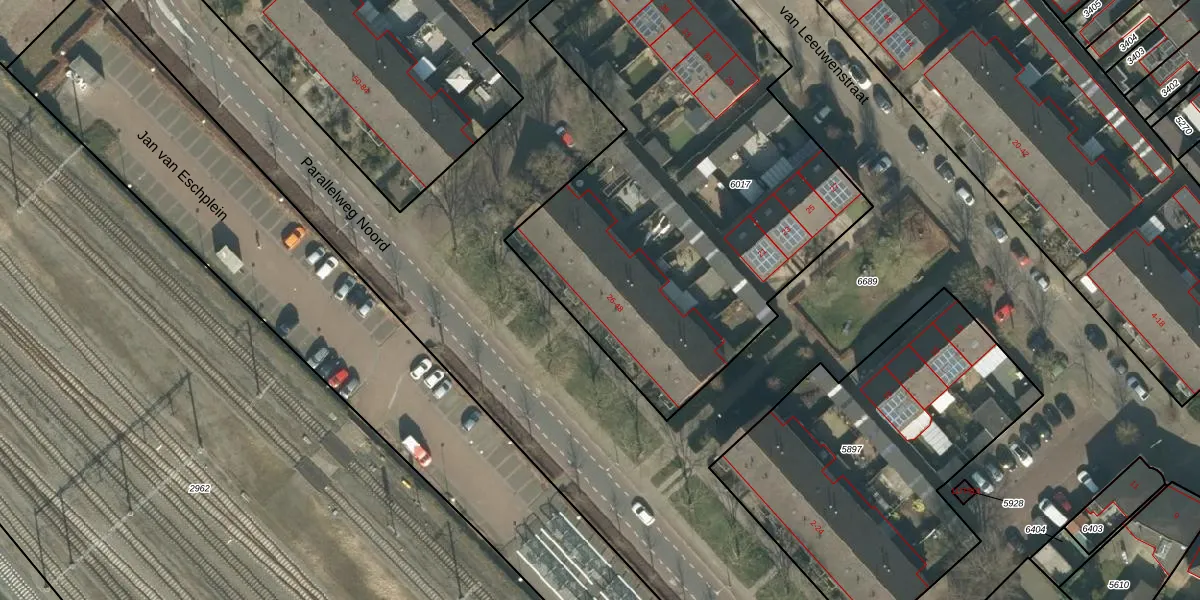 Het perceel waarop Parallelweg Noord 40 staat heeft een oppervlakte van 2620 m². Dit is een zeer groot perceel. De perceeloppervlakte wordt geregistreerd door het Kadaster. Gedetailleerde informatie over de maten van dit perceel kunt u vinden in het rapport Kadastrale kaart met maatvoering van Parallelweg Noord 40.